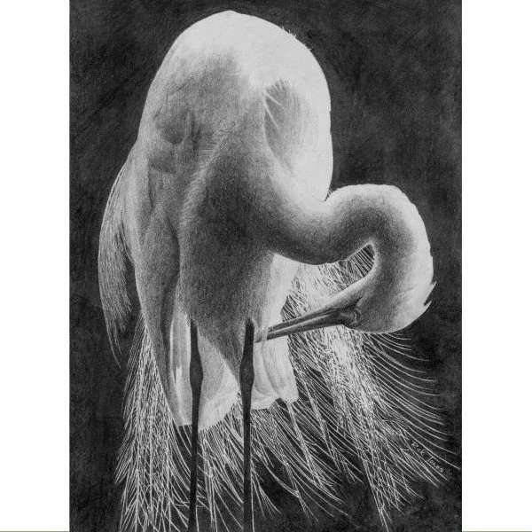 Bring the serene beauty of nature into your space with this high-quality print of my original graphite drawing of a crane preening its feathers. Capturing the grace and intricate detail of this majestic bird, this artwork highlights the delicate spaces between the lace-like feathers, a feature that took countless hours to perfect. This print embodies patience, precision, and the quiet elegance of wildlife, making it a perfect addition for nature enthusiasts, bird lovers, or collectors. Transform your walls with this timeless piece that celebrates the beauty of wildlife and fine art.